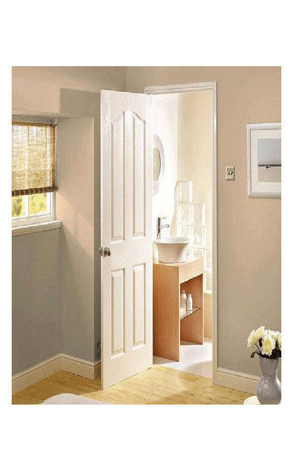 4) The door should swing into the room against the nearest wall and take up as little living space as possible.